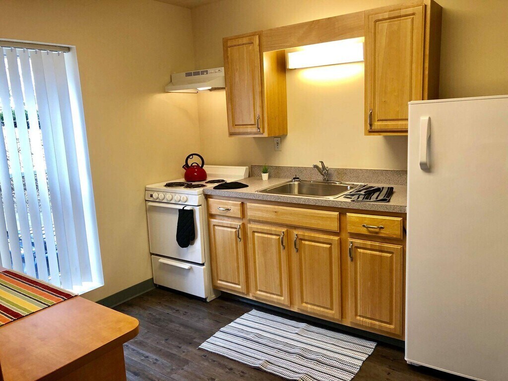 Roomier 306-357 sq ft studio, fully furnished. Desk, storage, full appliances. Walk to classes, fitness room on-site. Utilities covered—perfect balance of size and price for sophomores/juniors Pet Policy Cats allowed Small dogs allowed